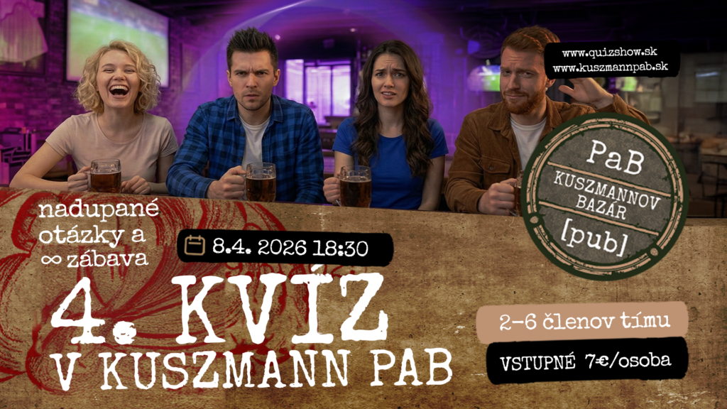 Už najbližšiu stredu 11. marca o 18:30 sa na vás opäť tešíme u nás v PaB-e na kvíze. Tešiť sa môžete na večer plný gurmánskych špecialít, vychladeného pivka, ale hlavne zábavy. 😎