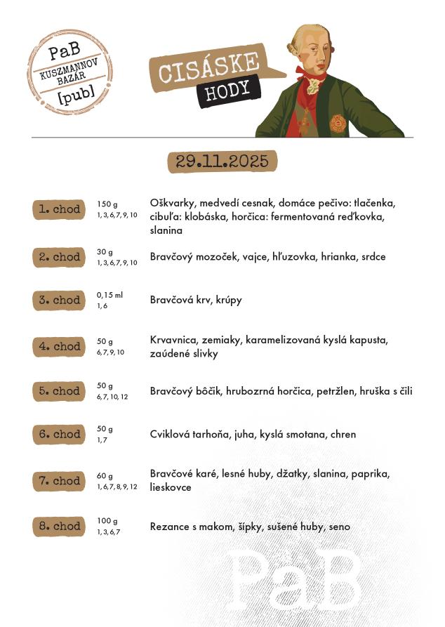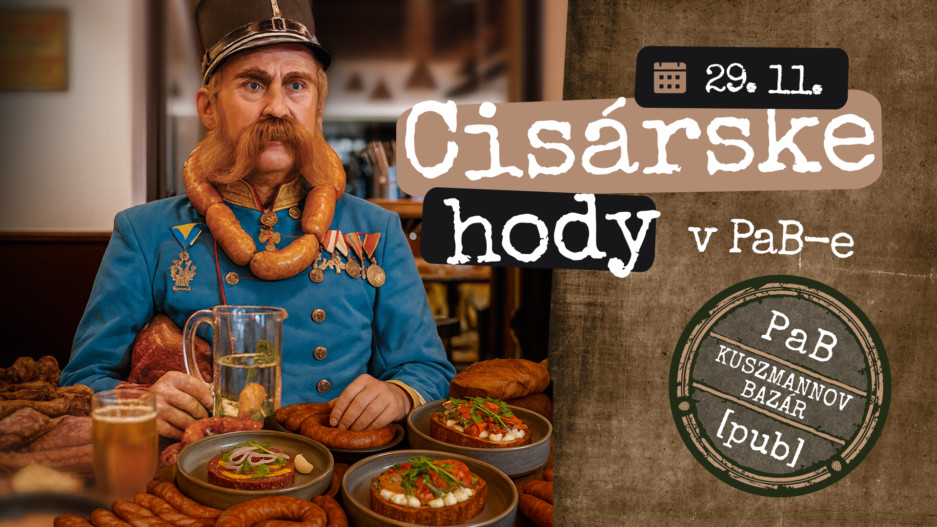 V časoch Rakúsko-Uhorska sa jedlo nebralo na ľahkú váhu a my v tom pokračujeme. 29. novembra vás v PaB-e Kuszmannov bazár čaká večer, kde sa tradičné zabíjačkové chute predstavia tak, ako by si ich možno vychutnali aj samotní cisári ale v modernejšom kabáte.